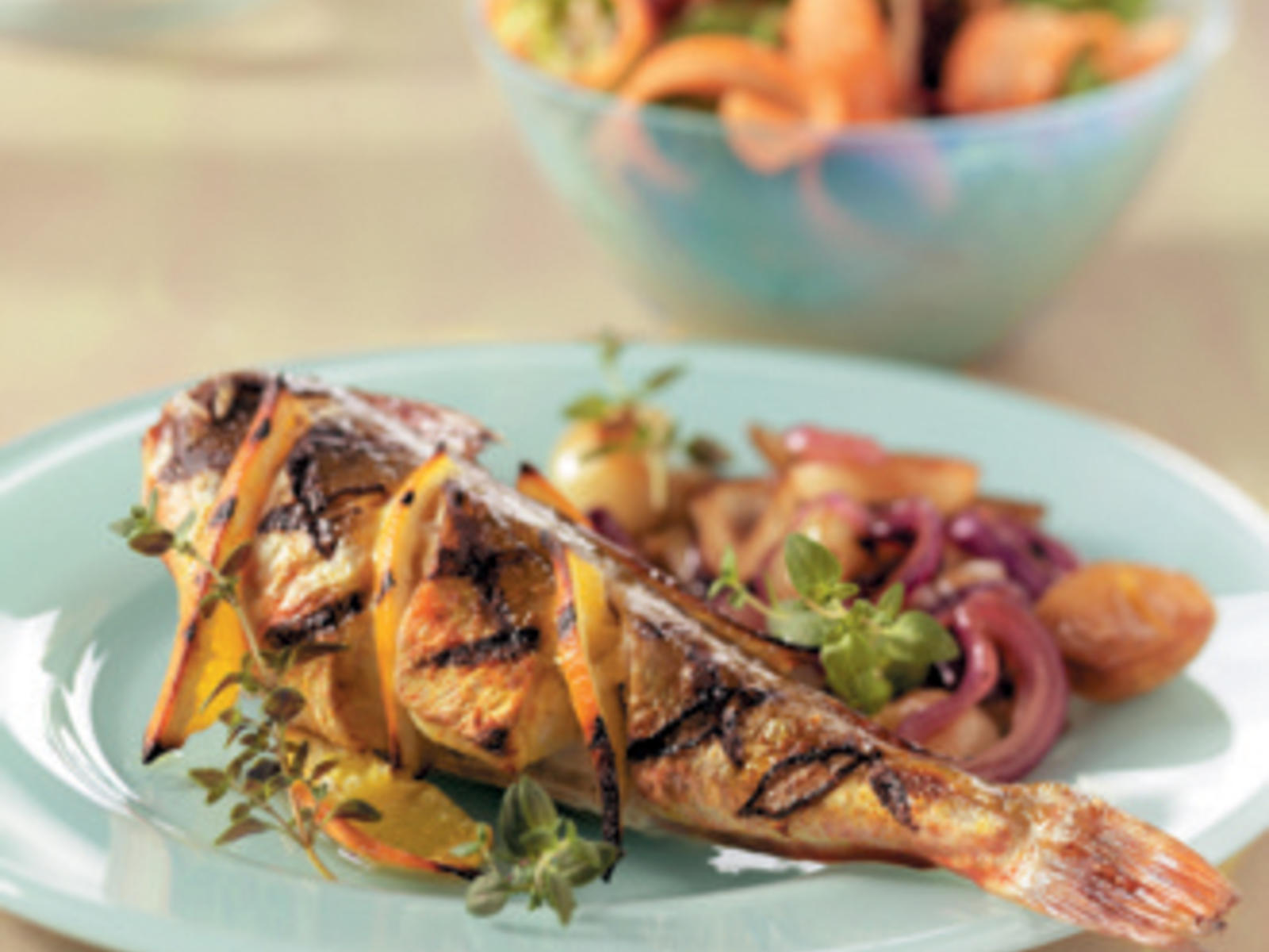 - Leg de vissen in een visklem op een hete barbecue en rooster ze in 10-12 minuten gaar. Keer ze halverwege. Serveer met de sjalottencompote.